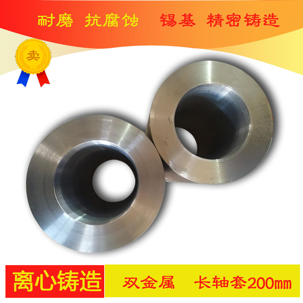 本厂采用锡基轴承合金+碳钢材料铸造的轴套具有结合牢靠,不裂纹,不脱胎,无气孔等优点,浇铸工艺多采用离心浇铸。